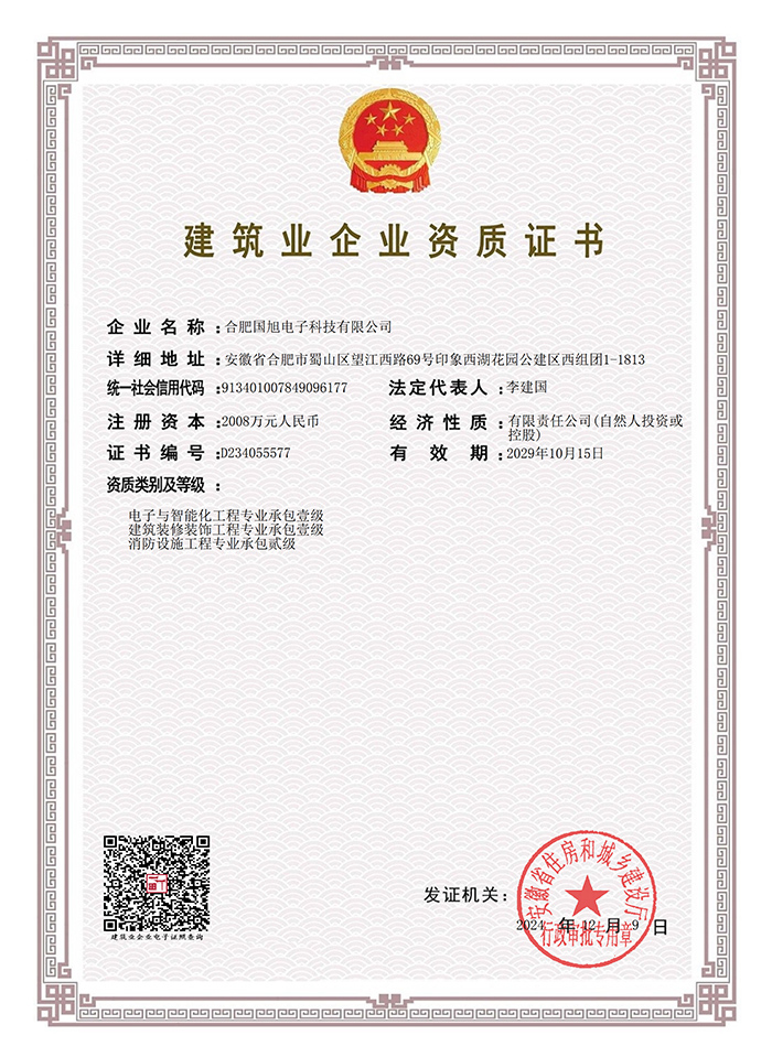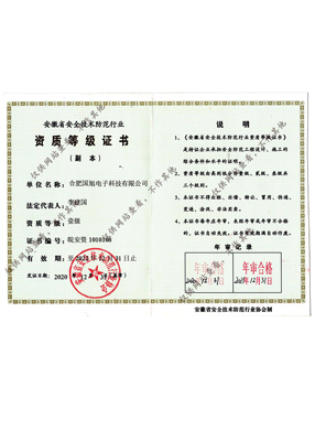 公司現(xiàn)已獲得承裝(修、試)電力設(shè)施許可證、電子與智能化工程專業(yè)承包壹級(jí)資質(zhì)、建筑裝修裝飾工程專業(yè)承包壹級(jí)資質(zhì)、消防設(shè)施工程專業(yè)承包貳級(jí)、安全技術(shù)防范行業(yè)壹級(jí)資質(zhì)、雷電防護(hù)裝置檢測(cè)資質(zhì)證乙級(jí)資質(zhì)、安全生產(chǎn)許可證、通過ISO9001:2015質(zhì)量管理體系認(rèn)證、ISO14001:2015環(huán)境管理體系認(rèn)證、OHSAS18001:2007職業(yè)健康安全管理體系認(rèn)證等榮譽(yù)。我們還將進(jìn)一步努力,爭(zhēng)取贏得更多的榮譽(yù)。